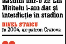 „Suporterii au fost anunțați și puși să facă scandal de o anumită persoană care era aproape de echipă. Eu considerasem că Marius Lăcătuș era o variantă bună ca antrenor. Regret că nu am fost mai puternic, să pot să-l determin să rămână. Noi semnaserăm contractul cu el. El a dat înapoi imediat, când a văzut că era să fie linșat“, a declarat Bădiță, care acum este președinte al CS Universitatea Craiova, nefiind implicat în fotbal. Omul pe care Pavel Badea și Dinel Staicu îl suspectează și azi de scandalul dintre fani și Lăcătuș este nimeni altul decât actualul patron al Craiovei, Mititelu.