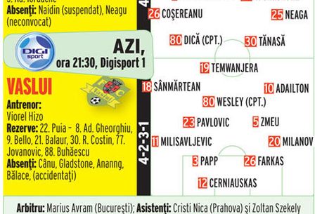 Cu Hizo în tribună, vasluienii au venit la Mioveni cu un singur gând, să câștige cele trei puncte și să se apropie de Dinamo în clasament. Iar Wesley și Adailton au făcut show marcând de trei, respectiv două ori pentru un 5-0 categoric.