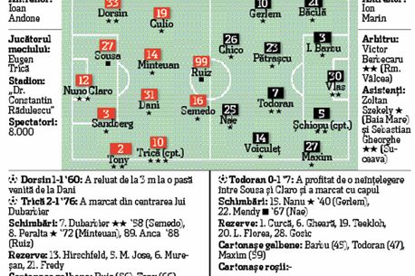 Locomotiva lui Andone nu stă pe șine în startul meciului. Iar marinarii lui Ion Marin își aruncă straiele de scafandrii din primul minut și trec în cele de acari. Șef de echipă, Todoran.