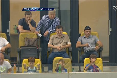 21:45 A început meciul de pe Arena Națională, iar Dragoș Nedelcu și Romario Benzar se află în tribune, de unde-și urmăresc colegii. Stadionul e, ca de fiecare dată, aproape gol.