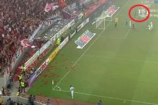Minutul 5: Torțe, petarde și spectacol total. Partida a fost reluată după circa trei minute. Suporterii dinamoviști au aruncat numeroase torțe pe teren, iar pompierii au avut de muncă încă din primele momente. Gazonul a fost curățat, astfel că jocul s-a reluat în cele mai bune condiții.