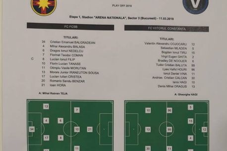 FCSB: Bălgrădean – Benzar, Cristea, Bălașas, Morais – Filips, Nedelcu (F. Matei 46) – Moruțan (Rusescu 75), Tănase, F. Comans – Hora (Gnohere 67)