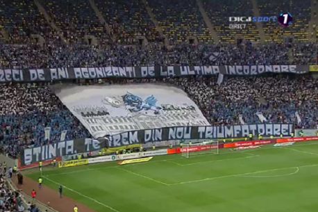 20:15 Suporterii veniți de la Sibiu au început să se instaleze în tribunele Arenei Naționale.