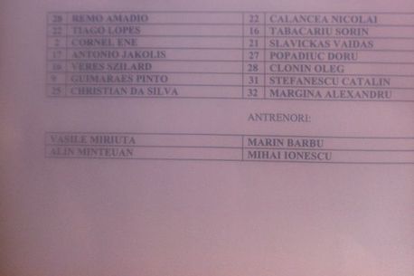 Rezerve: Cobrea, Mustivar, Nepomuceno, Albin, Astafei, Gerson, Fanchone