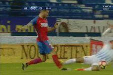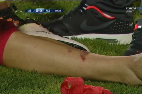 20:41 Ovidiu Popescu este scos din joc momentan, după o intrare inconștientă din partea lui Boiciuc, care este eliminat imediat de Alexandru Tudor. Atacantul moldovenilor i-a pus talpa pe tibie fundașului stelist, iar urmările sunt îngrijorătoare, după cum vedem din imaginile surprinse.
