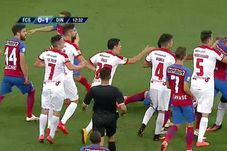 21:14 HAOS Nervi întinși la maximum, după golul înscris de Rotariu. O încăierare între jucătorii de pe teren cu Busuladzic, Gnohere și Tamaș protagoniști. Radu Petrescu a acordat doar cartonașe galbene.