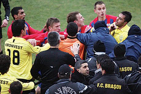 Finalul partidei dintre FC Brașov și Steaua a fost unul extrem de tensionat.