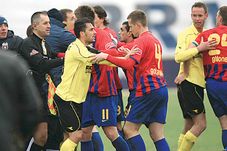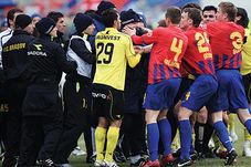 În minutele de prelungire, Sorin Ghionea a degajat în grabă o minge, lovindu-l în cap pe Mihai Roman, moment în care Răzvan Lucescu a răbufnit. Cei doi s-au înjurat, apoi au fost la un pas să se ia la bătaie. A izbucnit imediat o încăierare generală, creându-se un meleu în care au fost implicați mai mulți fotbaliști și oameni din staffurile tehnice ale celor două echipe.