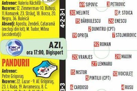 Rezerve: Zimmermann, Străuț, Bărbulescu, Borza, Stoimirovici, Komazec, M. Roman