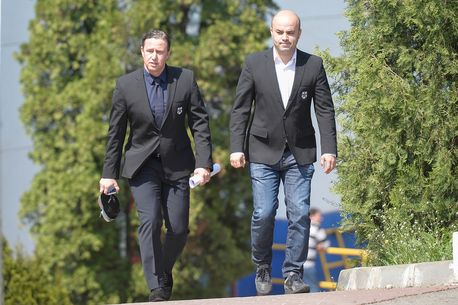 Reghecampf și ofițerul de presă Cătălin Făiniși. În mandatul lui Gâlcă, Făiniși era fotografiat de paparazzi în compania lui Reghecampf