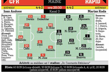 Mai nou, rapidiștii vizează obținerea poziției secunde, ocupată momentan chiar de CFR Cluj. Pe seama meciului CFR Cluj - Rapid s-au făcut destule speculații. Gurile rele spuneau că giuleștenii vor ceda ușor punctele trupei lui Ando, pentru a se răzbuna astfel pe Steaua! „Feroviarii" susțin însă contrariul și spun că merg în Ardeal pentru a câștiga. Directorul general Constantin Zotta