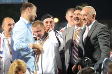 Boxorul Lucian Bute le oferă medaliile pentru câștigarea Supercupei României lui Dorinel Munteanu și Marius Stan