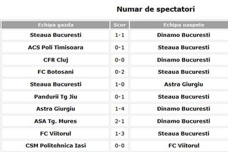 Cei doi granzi ai fotbalului românesc au în continuare în afara Bucureștiului un număr însemnat de suporteri. În top 10 al asistențelor din acest sezon sunt patru meciuri jucate de Dinamo în deplasare și patru disputate de Steaua ca oaspete. Paradoxal, doar două meciuri jucate de Steaua pe teren propriu au intrat în top 10 asistențe și niciunul al lui Dinamo. Mihai Stoica justificat această situație prin faptul că suporterii din București s-au plictisit de fotbal: „Publicul e sublim, dar lipsește cu desăvârșire. Nu e în regulă, dar ne-am obișnuit să jucăm cu stadioane pline în deplasare și cu un absenteism aproape total acasă. Bucureștenii sunt plictisiți […] Singura logică e că nu mai chef să vină la meci”.