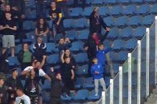 Apoi a parcurs câțiva zeci e metri către sectorul rezervat galeriei roș-albastre și s-a urcat pe gardul care separă tribunele pentru a sărbători. Un steward s-a dus imediat la oficialul FCSB și a vrut să-l dea jos, dar Stoica a făcut un gest agresiv – ca și cum ar fi vrut să-l lovească – și a continuat să se manifeste la adresa fanilor.