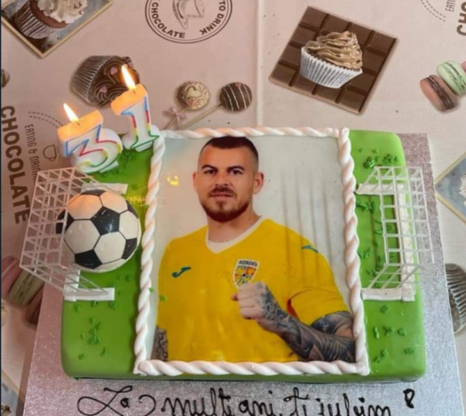 Alături de acest text emoționant, mama fotbalistului a mai atașat o fotografie cu un tort care avea imprimată o poză a lui Denis Alibec în tricoul naționalei României. Pe tort au fost puse și două porți în miniatură, dar și o minge de fotbal, peste o glazură care seamănă cu gazonul unui teren de fotbal.