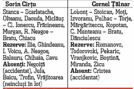 Cîrțu va face mai multe modificări în primul „11” după dezastrul de la Vaslui. Primii vizați? Jula și Baicu. Cei doi vor fi lăsați acasă. „I-am avertizat pe toți înainte de meciul cu Vaslui. Le-am spus că nu mai avem timpul din tur, când te gândeai că poți drege lucrurile în retur. Acum vor plăti! Vom da și amenzi, așa cum am dat și după înfrângerea cu UTA de acasă”, explică tehnicianul Daciei. Elevii lui Cîrțu joacă în partida de azi pe o primă de 3.000 de dolari fiecare. Banii au fost promiși din partea lui Gigi Nețoiu, actualmente acționar la gruparea argeșeană și fost conducător la Dinamo.
