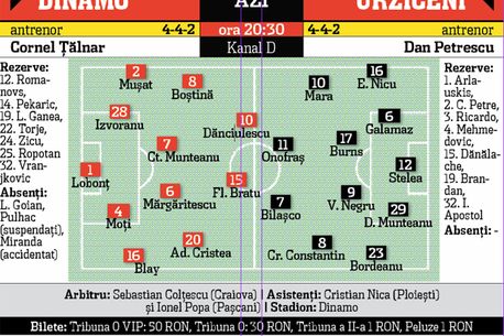 În atac, vor face pereche Bratu și Dănciulescu, în ceea ce se vrea un fel de repetiție generală pentru întâlnirile de foc cu Rapid și, mai ales, cu Steaua.