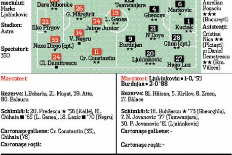 „Moldo-but” câștigase marți primul meci al său în cariera de antrenor principal, învingând Iașiul în Cupă cu 3-0, iar aseară, echipa sa a mai făcut o victimă: CS Otopeni. În prima parte, „plăieșii” lui Moldovan au jucat destul de crispat în fața ilfovenilor, nereușind să arate fotbalul spectaculos pe care vasluienii îl propuneau la începutul sezonului. Cu două vârfuri autentice și un N’Doye croit pe atac, moldovenii au presat totuși steril și fără prea multe reușite la poarta bulgarului Pîrgov. Fotbalul sărac părea să dispară în minutul 53, când Ljubinkovic a profitat de un balon la marginea careului și i-a executat pe băieții lui Bucurescu. Însă a fost doar un foc de paie, pentru că meciul s-a stins din nou, Vasluiul ținând de rezultat, iar Otopeniul neștiind să atace. Finalul a mai adus un gol în contul galben-verzilor, reușita lui Burdujan încheind conturile meciului.
