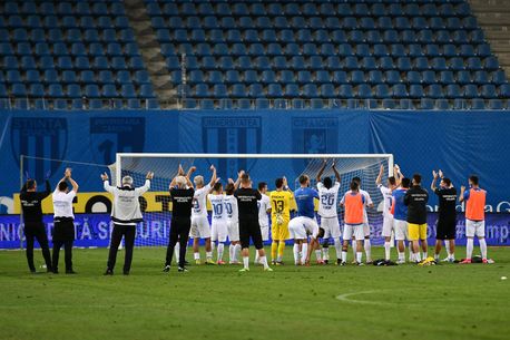 La finalul meciului, jucătorii s-au gândit să le mulțumească într-un mod inedit. S-au dus în fața peluzei goale și au aplaudat, dar au și cântat imnul la microfon. A fost o seară frumoasă în Bănie. Nistor și Koljic au înscris golurile care au dus formația alb-albastră la doar 4 puncte de liderul CFR Cluj.
