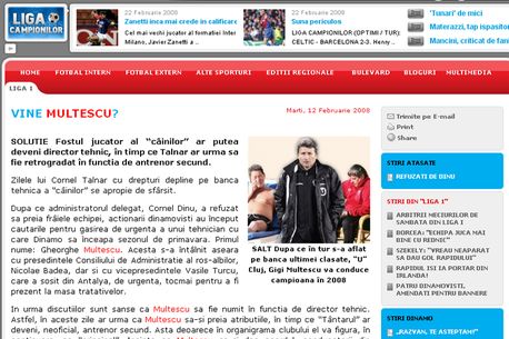 Gigi Mulțescu a fost numit luni în funcția de antrenor la Dinamo, înlocuindu-l pe Cornel Țălnar. Această mutare pe banca tehnică a "câinilor" a fost anticipată de ProSport încă din 12 februarie, când a anunțat în exclusivitate sosirea tehnicianului în Ștefan cel Mare. Atunci oficialii roș-albilor, în frunte cu președintele Nicolae Badea au negat cu tărie această variantă, în timp ce Mulțescu nu a dorit nici să confirme, dar nici să infirme iminenta sa "descălecare" în "Groapă". El a lăsat să se înțeleagă că s-a întâlnit cu Badea, la acea dată, din motive personale, dorind să cumpere fetei sale un calculator de la firma boss-ului dinamovist.