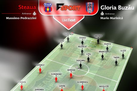 Deși toată lumea se aștepta la un galop de sănătate în fața Gloriei Buzău, Steaua n-a reușit în prima repriză să introducă mingea în poarta lui Arcaba. Ba chiar, mai aproape de gol a fost “Steluța”.