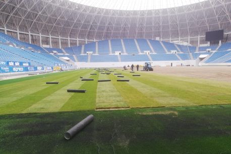 Marţi seara, constructorul preconizează că se va încheia procesul de amenajare a gazonului, unul adus din Spania.