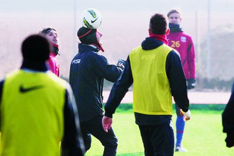 Primele 15 minute ale ședinței de pregătire organizate ieri de Ilie Stan au fost dedicate jocului cu capul. Mai precis, steliștii au fost împărțiți în două echipe și au jucat un meci de-a latul, în care mingea nu trebuia atinsă cu piciorul. La exercițiu a participat și Galamaz, stelistul având în continuare casca de protecție pe cap, după lovitura primită la Ploiești. „Bravo, Gala! Șoc, ai dat cu capul în minge! Mâine o să ajungi pe prima pagină în toate ziarele”, i-a strigat amuzat Tătărușanu, în timp ce câțiva colegi au început să aplaude.