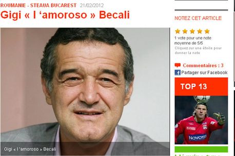 „Gigi Iubitorul Becali” este titlul dat de francezi unui articol în care scriu despre intențiile lui Gigi Becali de a deveni prim-ministru, dar și de episodul în care a fost închis pentru sechestrarea hoților care i-au furat mașina.