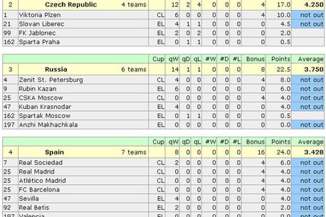 Grecii au 29.000 de puncte, cu aproape 3.000 mai multe decât România (26.007) și ar trebui ca Steaua și Pandurii să obțină 6 victorii în plus față de cele două reprezentante ale Greciei pentru ca Liga 1 să urce în clasament.
