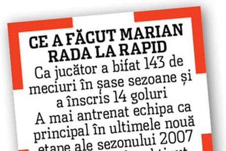Secundul lui Rada nu a fost stabilit încă, dar este de așteptat să se apeleze la serviciile unui fost jucător rapidist. Cele mai mari șanse să preia această funcție le are, așa cum ProSport v-a anunțat încă de ieri, Adrian Iencsi.