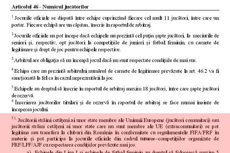 Pasajul din regulamentul ROAF, care o incriminează pe Petrolul