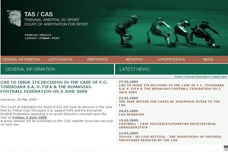 Tribunalul de Arbitraj Sportiv a anunțat că va transmite decizia privind cazul intentat de FC Timișoara contra FIFA și FRF vineri, 5 iunie, informează site-ul oficial al instituției. Sursa citată menționează că va fi publicată o declarație de presă pe site-ul TAS. La începutul lunii septembrie 2008, FIFA a cerut FRF să penalizeze cu șase puncte echipa FC Timișoara pentru nerespectarea unor prevederi ale deciziei TAS în legătură cu palmaresul formației Politehnica Timișoara. Comitetul Executiv al FRF a decis punerea în aplicare a deciziei FIFA de penalizare cu șase puncte a echipei FC Timișoara pentru neexecutarea punctului 3 din hotărârea TAS, pronunțată la 25 aprilie 2008, în cazul palmaresului grupării Politehnica.