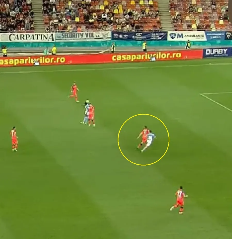 Faza ofsaidului la golul de 2-2, nesancționat de arbitrul Horațiu Feșnic. Sursă foto: Captură Digisport