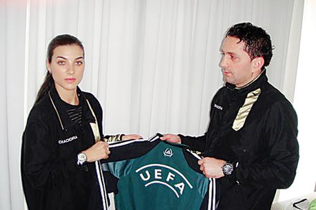 După ce a făcut spectacol în cele patru ore pe care arbitrii le-au petrecut la cumpărături, centralul craiovean i-a dăruit Gabrielei Dănănae treningul său de la FIFA.