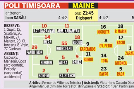 va apărea cel mai probabil pe teren la Timișoara. Forțat de