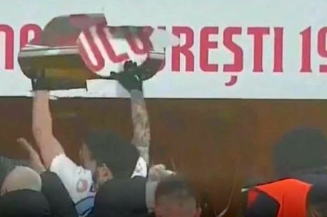 La finalul partidei, în drumul către vestiare, Ovidiu Popescu a lovit cu mâinile pancarta inscripționată cu numele și însemnele clubului Dinamo București și a găurit-o.
