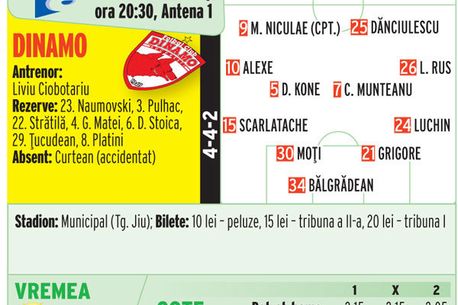 Puteți deveni primul antrenor care o bate pe Dinamo la Târgu Jiu…