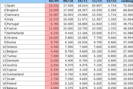 Avantajul României este că din calcului coeficientului ce va conta în sezonul 2014-2015 va dispărea sezonul 2008-2009, adică cel mai slab pentru Liga I în ultimele 5, în timp ce țări clasate deasupra noastră vor pierde punctaje consistente, peste media ultimelor 5 sezoane.