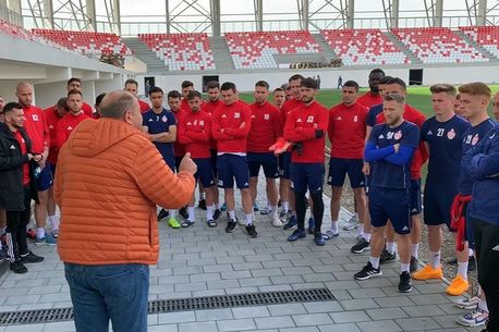 Laszlo Dioszegi, finanțatorul echipei Sepsi Sfântu Gheorghe, le-a ținut un discurs motivator jucătorilor lui Leo Grozavu chiar pe noua arenă covăsneană.
