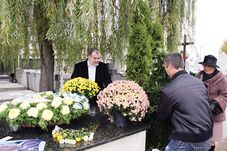 Lor li s-a adăugat un aspirant la un loc în Parlament, Florin Călinescu, care candidează din partea unui colegiu local. Când l-a zărit pe actor la cimitir, Gica Dobrin nu s-a ferit să-i reproșeze acestuia: „De ce oare n-ai venit și până acum?“