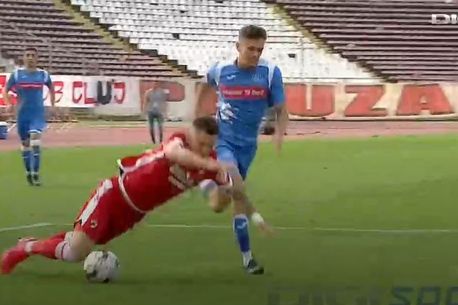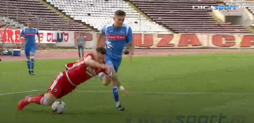 Deian Sorescu a căzut ușor în careu, în minutul 9, după ce a fost atins pe mâna stângă de Sorin Șerban. Centralul a fluierat penalty, fără ca faultul să fie unul evident.