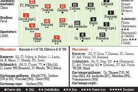Nu că a doua ar fi fost diferită sau cu ceva mai bună. Dar cu siguranță mai comică. După o oră de joc, a marcat și Gerlem. Nu pe tabelă, ci pe tabelul cu amenzi al Farului. Atacantul a fost eliminat, iar în cei 30 de metri pe care i-a parcus până la vestiar și i-a aplaudat fanii cu … degetul mijlociu. La fel de multă „simpatie” a văzut și Gerlem de la fani. Oricum, chiar și un om în plus, Argeșul a jucat la fel de bătrânește și previzibil. Și nimic nu a stricat victoria cu gust de Chico a Farului.