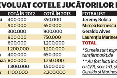 Cota lui Bokila s-a mărit de cinci ori, iar cea a lui Gicu Grozav s-a dublat după sezonul 2012-12013