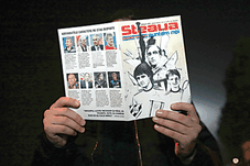 Continuând pe linia protestelor îndreptate către patronul Gigi Becali, suporterii steliști au făcut special pentru meciul de ieri o revistă de opt pagini. Pe copertă sunt foștii jucători ai Stelei, Lăcătuș și Stoica, ambii ținând în mâini Cupa Campionilor. Două pagini îi sunt dedicate lui Becali și cuprind declarații hilare ale patronului, precum și un remember cu umilirea de către patron a unor foste glorii, cum ar fi Hagi.