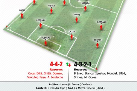 Popa forțează egalarea, scoate un mijlocaș și bagă un atacant schimbă, Bâlbă luându-i locul lui Bernsjak.