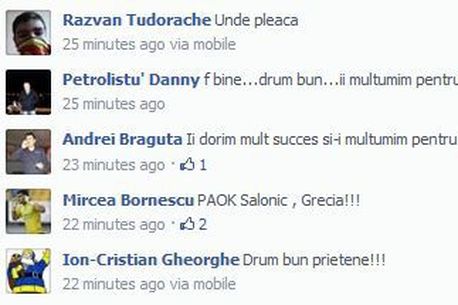 Mesajul lui Bornescu a primit un număr impresionant de comentarii, portarul Petrolului fiind cel care a confirmat la un moment dat în timpul discuției de pe Facebook și clubul unde va juca Benga din această iarnă: „PAOK Salonic , Grecia!!!„