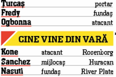 „Nu este accidentat, dar este decizia mea tactică. Am patru atacanți în lot pentru cele două partide”, a explicat sec „Fălcosul”. Alte două indicii sunt parafarea transferului lui Yossouf Kone, de la Rosenborg Trondheim, și achiziționarea definitivă, pentru 600.000 de dolari, a lui Diego Ruiz.