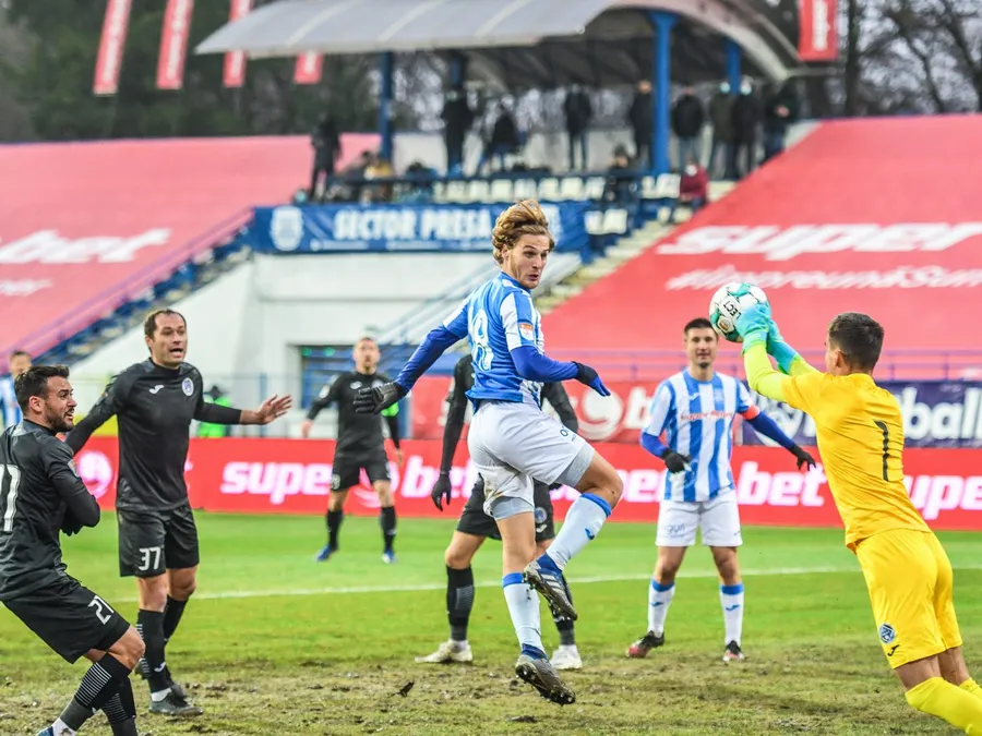 Min. 17. Ocazie pentru Poli Iași! Răzvan Onea șutează mingea către poarta oaspeților, însă portarul reține minge fără probleme