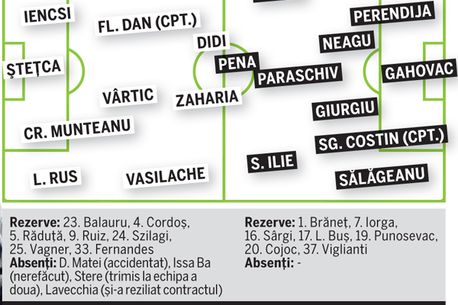 rezerve: Balauru, Diego Ruiz, Cr. Munteanu, L. Răduță, Matei,