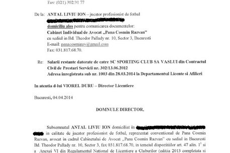 În prima parte a declarației, Adrian Porumboiu a făcut referire la Liviu Antal. Jucătorul Vasluiului are, însă, în acest moment, cea mai mare restanță salarială, ce însumează aproape șapte luni. De altfel, 135.000 de euro sunt banii pe care clubul moldovean ar fi trebuit să-i vireze până la 31 decembrie, anul trecut, iar la această sumă se adaugă și cele trei luni din 2014.